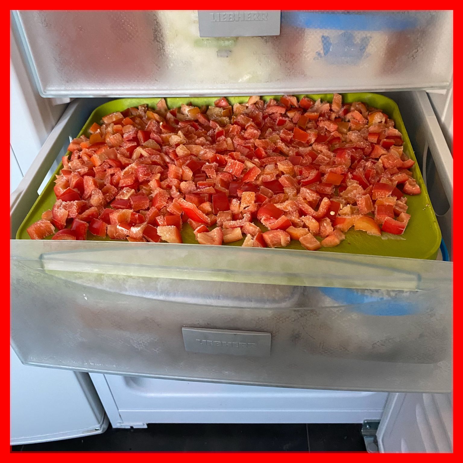 Maar goed. Stel je dus voor: je hebt nog wat over, let dan op deze handige lifehack! Ik snij ze het liefst in blokjes en laat ze op de snijplank liggen. Hoppa, zo de vriezer in ๐๐ Het voordeel hiervan is dat ze niet aan elkaar gaan klitten (daar houden we niet van he ๐ ) En na een paar uur kun je ze alsnog in een zakje of Tupperware bakje schudden (of een gebruikte ijscobak – zie de la erboven ๐).